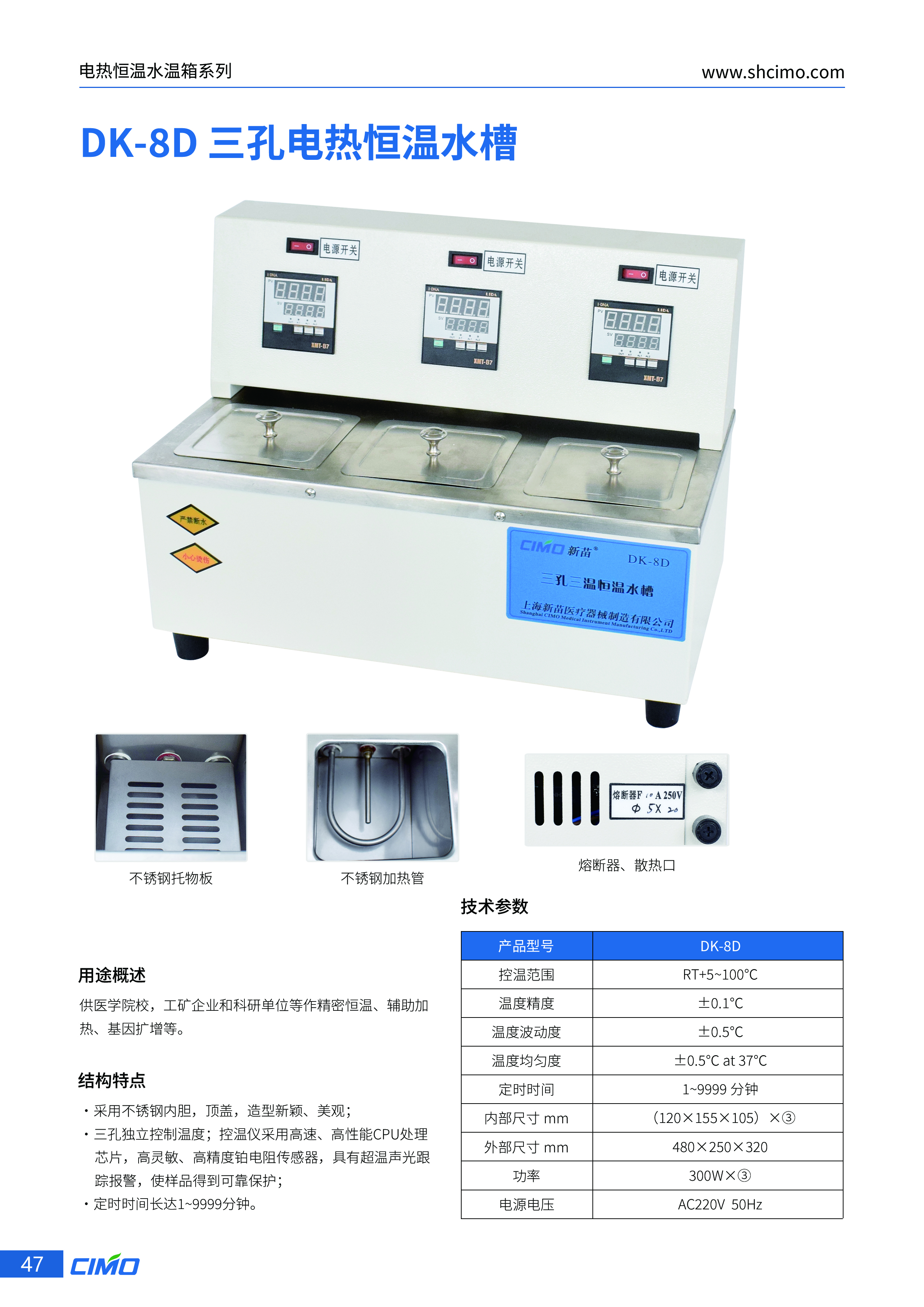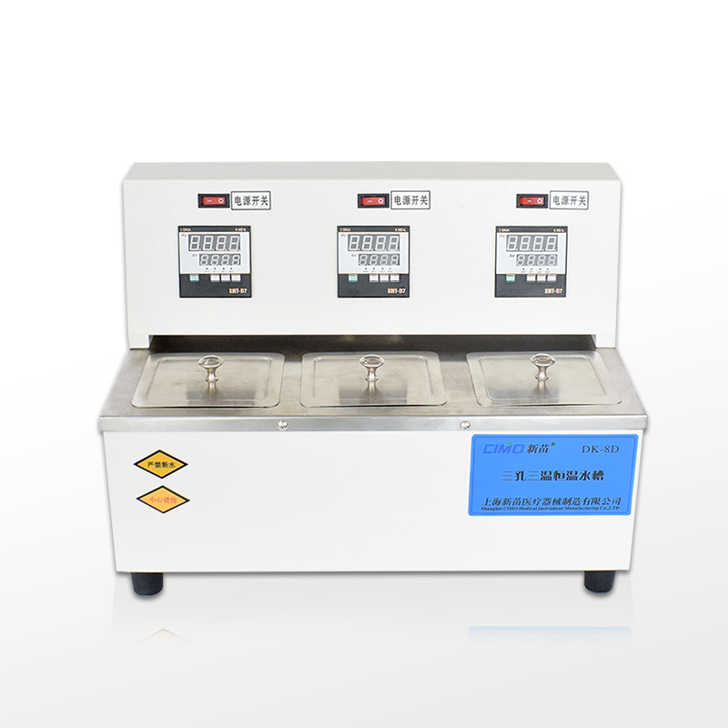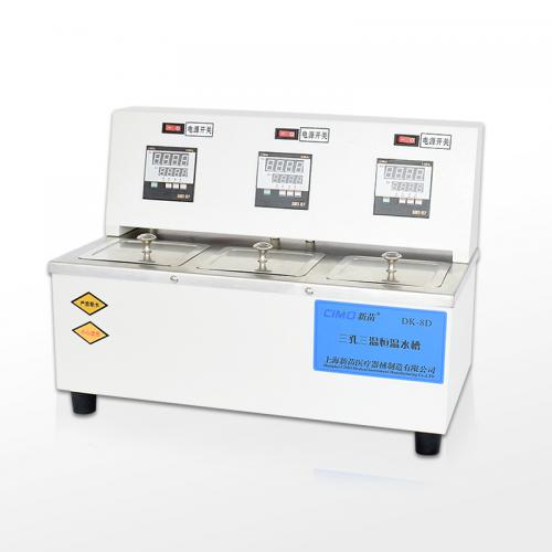 DK-8D三孔电热恒温水槽外壳采用优质冷轧钢板喷塑而成。内胆及顶盖采用不锈钢材料,造型新颖、美观;