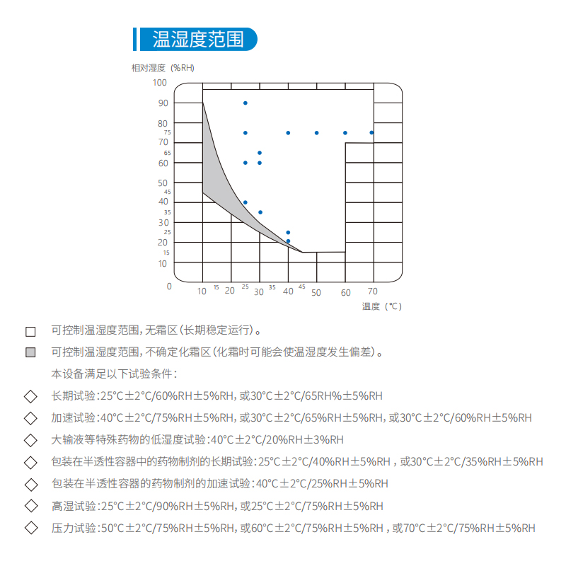 本系列产品具有冷热恒温、恒湿控制功能,能提供非常稳定的温度、湿度,精确模拟各种气候条件。满足国家新版药典、GMP、FDA、ICH和GLP等标准中规定的进行加速试验、中间试验、长期试验及影响因素试验所需相关条件。 广泛应用于制药企业的研发及质量控制实验室、药品研究机构、药品检测机构等。